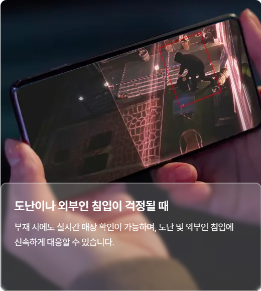 매장 내 사고 발생 시 빠른 대응이 가능해 고객의 안전을 보호할 수 있습니다. 또한 화재나 응급상황 등 비상 상황에 대한 실시간 모니터링이 가능합니다.