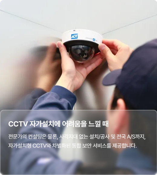 설치에서 AS, 피해 보상 까지 ADT캡스에서 관리해드립니다. 특히 사후 AS가 불가능한 타 저가형 CCTV 와 달리, 제품 및 소프트웨어의 오류 및 고장을 쉽고 간편하게 AS 해드립니다.